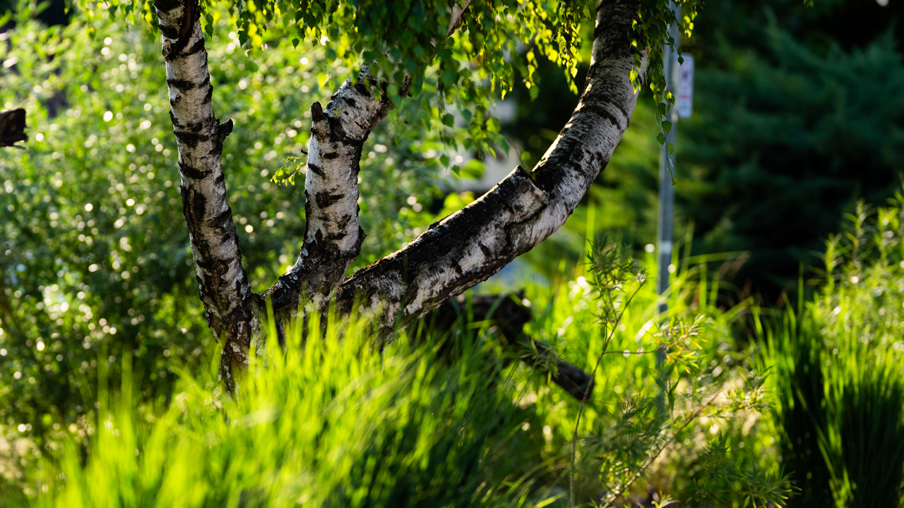 Okolo záhrady sú osadené obrubníky s otvormi, cez ktoré preteká voda z povrchu cesty do znížených častí záhrady. V tejto najnižšej nivelete sú vysadené trvalky odolné voči nárazovému premočeniu, ktoré využívajú prirodzenú vlahu. Na vyvýšených miestach sú zasadené suchomilnejšie parkové trvalky.
